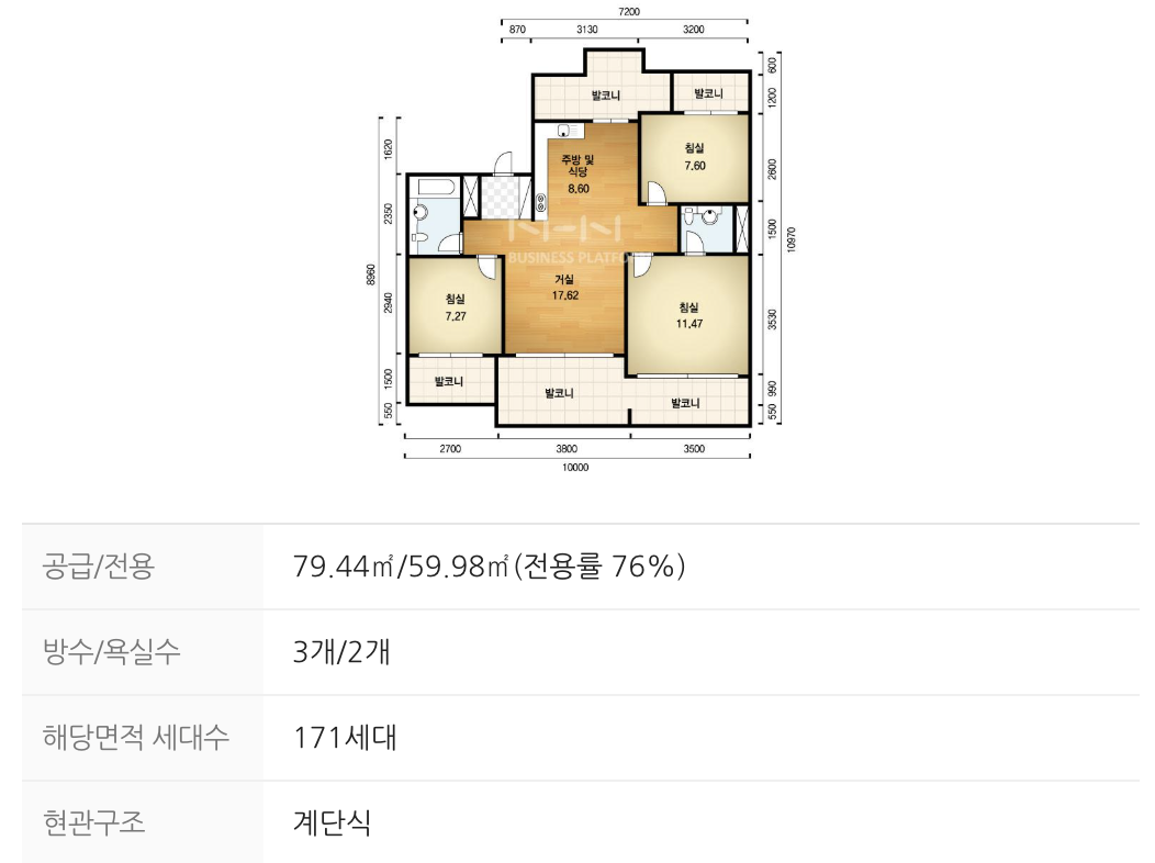 공급면적 / 전용면적 : 79.44 / 59
